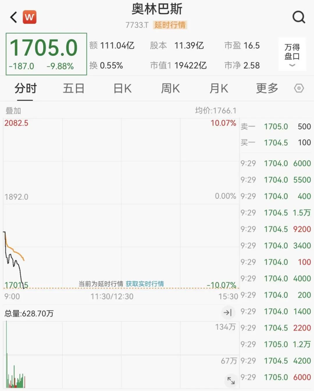 日本奥林巴斯股价一度跌超10%,此前FDA对该产品发出进口警告。
